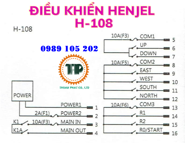 Sơ đồ đấu nối bộ điều khiển cầu trục từ xa Henjel-H108