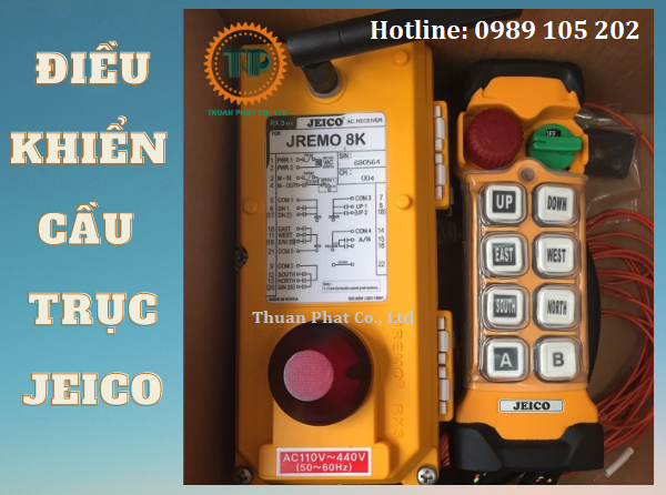 Điều khiển từ xa JEICO JREMO 8K Hàn Quốc có thiết kế nhỏ gọn và rất chắc chắn, gồm bộ thu sóng và bộ phát sóng. Bộ thu sóng được liên kết với palang và bộ phát sóng vừa tay cầm cho người vận hành dùng để điều khiển palang, cầu trục.