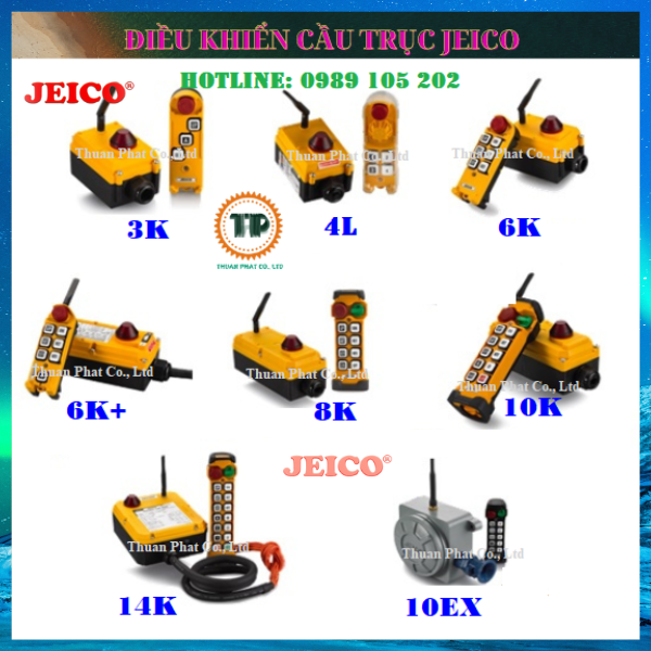Công ty thiết bị cầu trục Thuận Phát phân phối tất cả các quy cách của điều khiển từ xa cầu trục JEICO, sản phẩm mới 100%, CO/CQ, bảo hành chính hãng 12 tháng, hàng luôn sẵn tại kho công ty, giao hàng nhanh chóng ngay khi nhận được đơn đặt hàng của Quý khách.