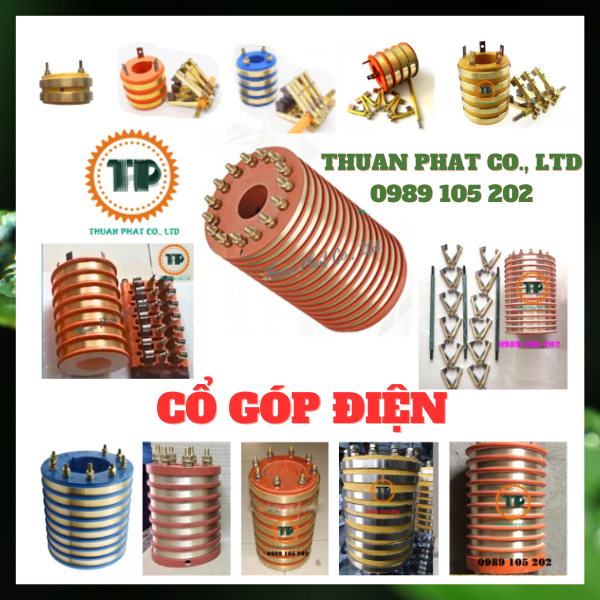 Công ty thiết bị cầu trục Thuận Phát cung cấp các loại cổ góp điện 2 pha, 3 pha, 4 pha, 5 pha, 6 pha, 7 pha, 8 pha, 9 pha, 10 pha, 12 pha, 14 pha, 16 pha. Hàng sẵn các kích thước thông dụng và nhận gia công các kích thước không có sẵn theo yêu cầu của khách hàng.