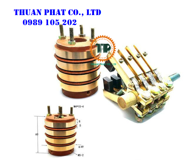 Cổ góp điện 4 pha bao gồm bộ giá đỡ chổi than (4 cái) và 8 lá than điện. Hãy liên hệ cho chúng tôi theo hotline 0989.105.202 để được tư vấn và báo giá phù hợp nhất.
