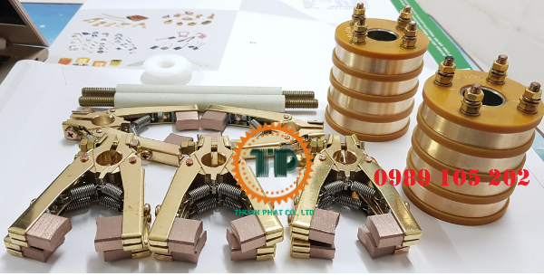 Cổ góp điện 4 vành đường kích 40 x 80 x 95 mm sử dụng bộ giá đỡ chổi than 8 x 12 x 32 mm có khả năng tiếp xúc và dẫn điện tốt, dễ dàng trong việc lắp đặt và thay thế.