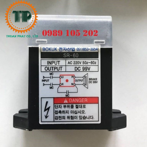 Công dụng của Diot SR-60 Hàn Quốc là dùng để chỉnh lưu dòng điệp xoay chiều 1P/220V/50Hz sang dòng điện 1 chiều DC 99V cho cuộn hút phanh để đóng mở phanh động cơ nâng hạ, di chuyển pa lăng, cầu trục, cổng trục.