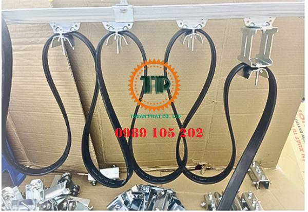 Con lăn treo cáp: số lượng con lăn tùy thuộc vào chiều dài hệ cấp điện máng C, thông thường 2 mét cáp dẹt bố trí 1 con lăn treo cáp.