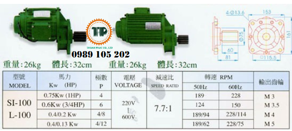 Thông số kỹ thuật motor dầm biên Đài Loan