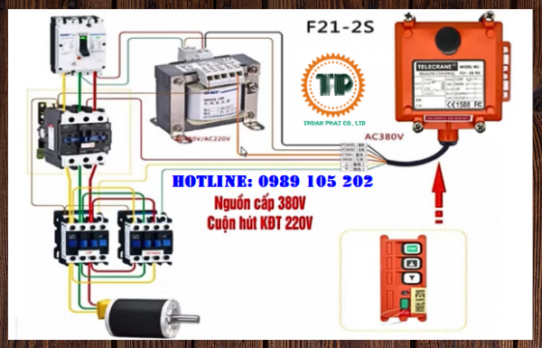 Sơ đồ hướng dẫn đấu nối bộ điều khiển cầu trục từ xa 2 nút F21-2S