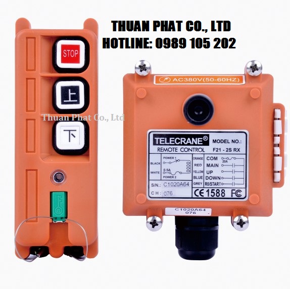 Bộ điều khiển cầu trục từ xa 2 nút F21-2S là một trong số các điều khiển từ xa của hãng Telecrane, gồm 2 nút điều khiển, được công ty Thuận Phát nhập khẩu trực tiếp từ Đài Loan, hàng sẵn tại kho, giá cả cạnh tranh nhất thị trường.
