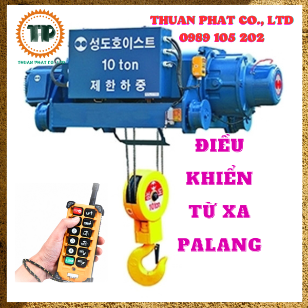 Điều khiển từ xa palang điện là một thiết bị điều khiển không dây. Thay vì truyền tín hiệu thông qua dây cáp thì sẽ sử dụng tần số sóng riêng (sóng radio, sóng vô tuyến) để có thể điều khiển palang nâng hạ, di chuyển vật nặng theo ý muốn.
