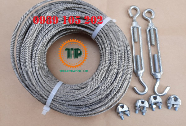 Ròng rọc treo cáp còn có các phụ kiện đi kèm như: dây cáp thép, tăng đơ cáp thép, ốc siết cáp...được lắp đặt để hoàn chỉnh hệ dây cáp điện.